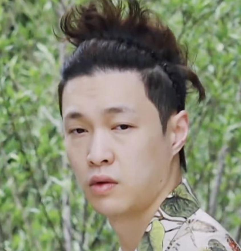 他自己晒出的素颜自拍里,胡子拉碴,加上这个角度,看得出来他是想营造一种爷们儿的感觉。但因为脸太尖的原因,还是免不了有几分女气。