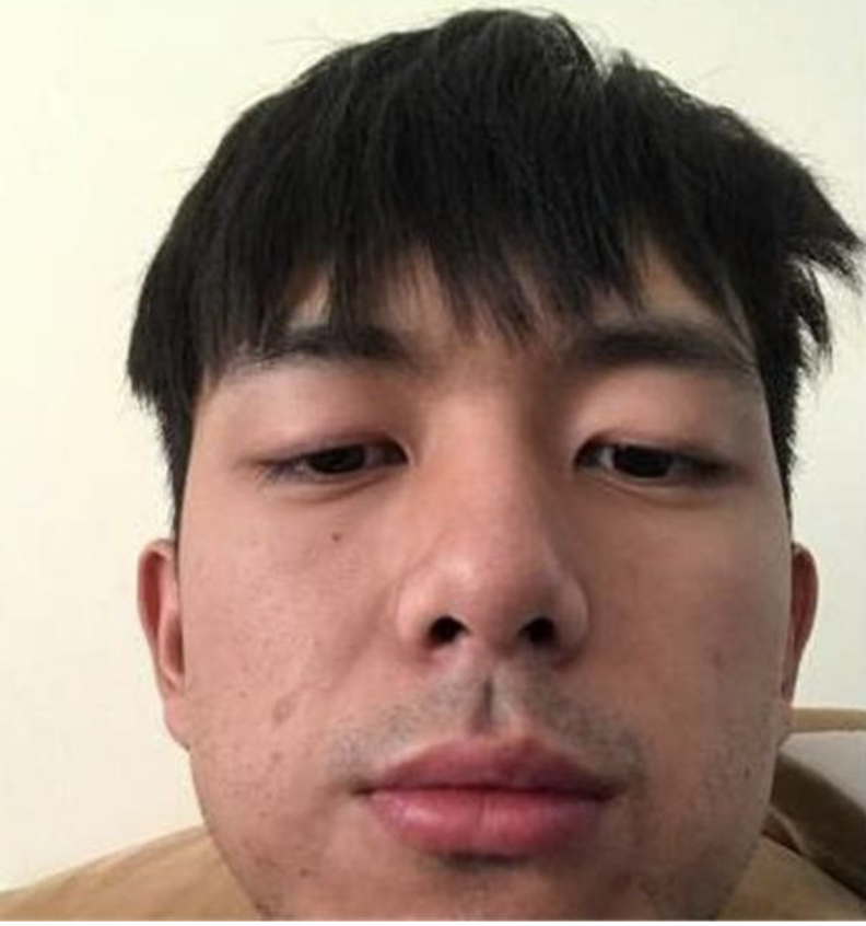 可以看出他的皮肤比早期的素颜好了许多,没有痘痘的痕迹,但眼下的眼袋比较重,妆后明显的大双眼皮,在素颜时也变成了小内双。