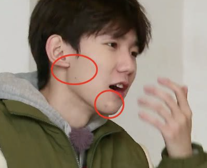 照片中,王源的肤色暗黄,远没有妆后那么白皙,而且他的脸颊上上布满了痘痘、痘印,一大片的红肿,看起来痘痘很严重。
